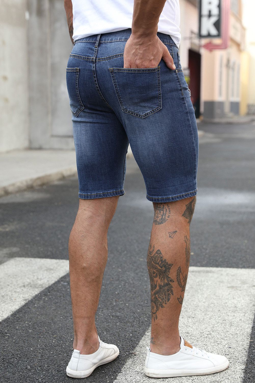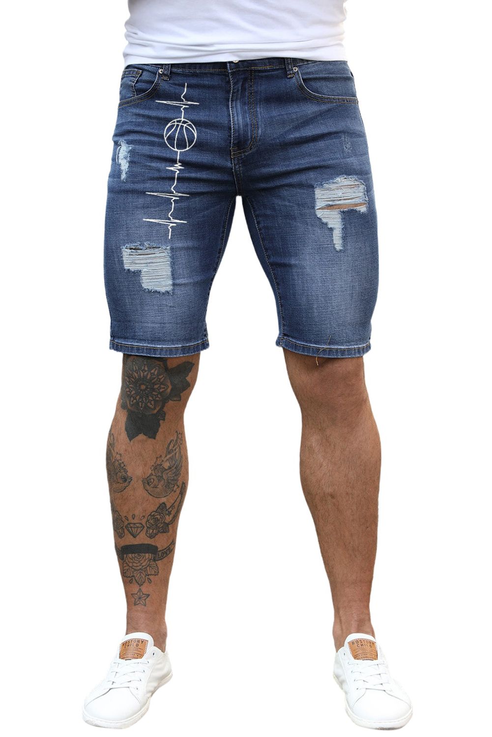 Men's Basketball Printed Skinny Fit Ripped Denim Shorts