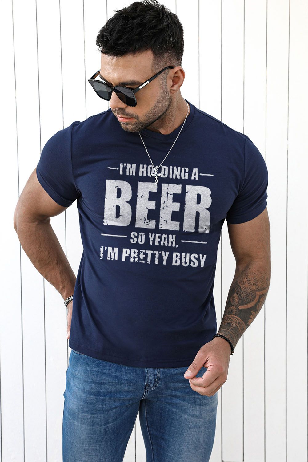 BEER Letter Printed Muscle Fit Men's Graphic T Shirt