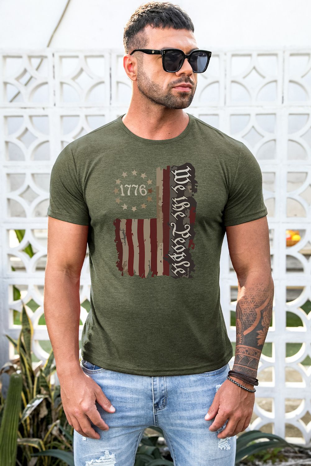 Green Vintage USA Flag 1776 Patriotic Mens T Shirt