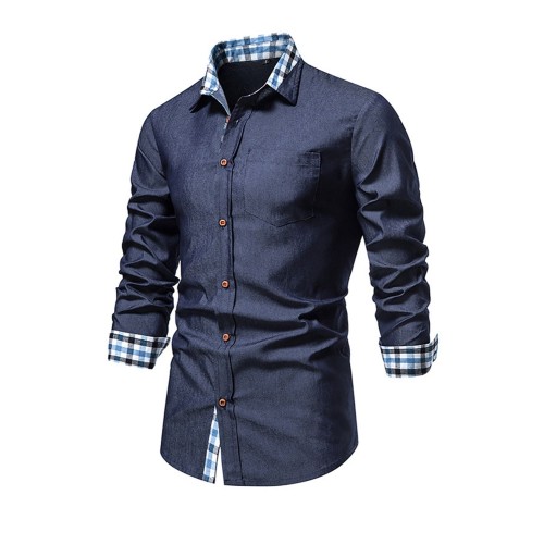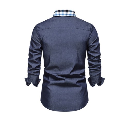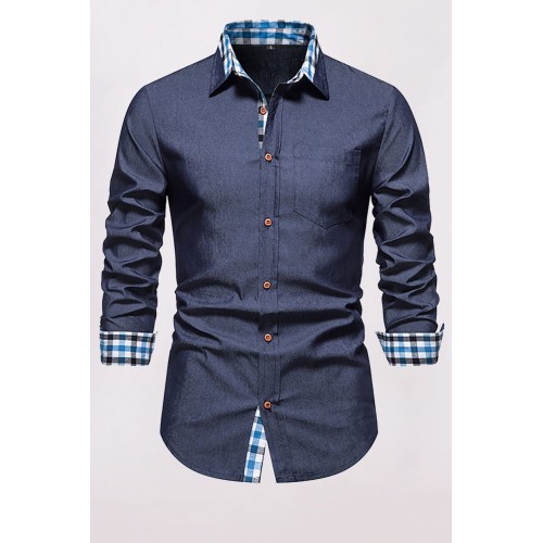 Plaid Patchwork Button-up Men's Long Sleeve Shirt