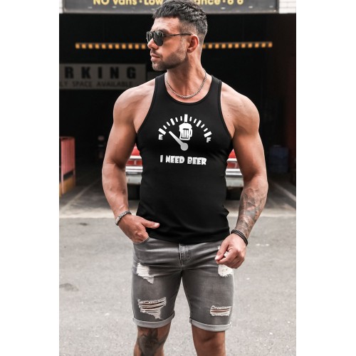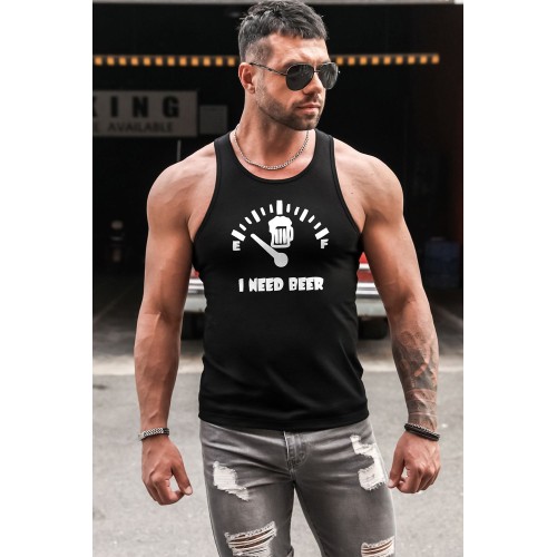 Black I NEED BEER Graphic Print Men's Tank Top
