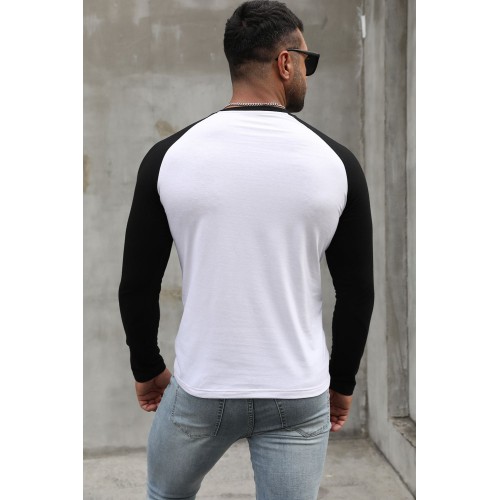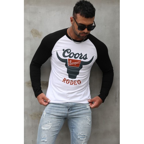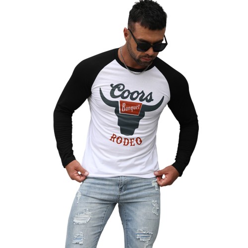 Black Men's Steer Head Letter Print Color Block Long Sleeve Top