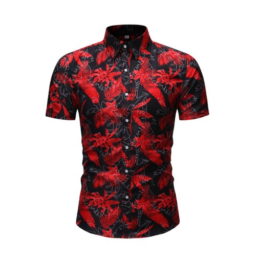 Men's Floral Print Short Sleeve Shirt and Elastic Waist Shorts Set