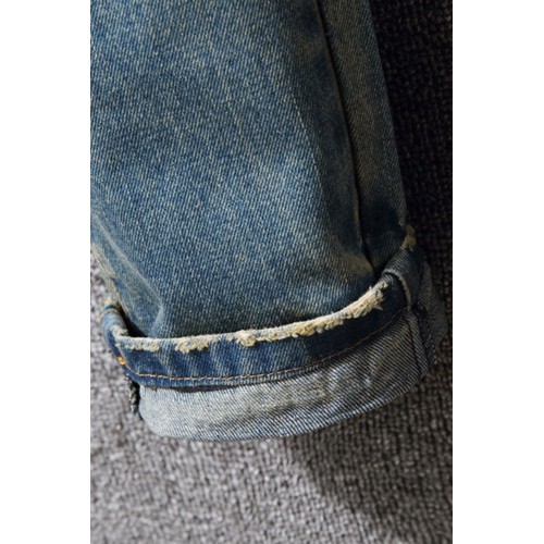 Distressed Wash Buttoned Straight Leg Men's Jeans