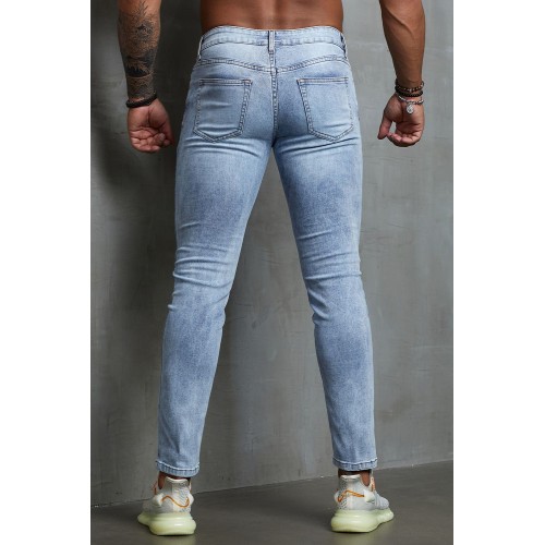 Sky Blue Men's Ripped Ghost Patches Slim Fit Skinny Jeans