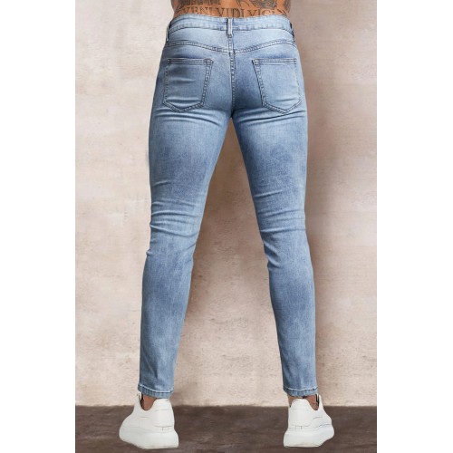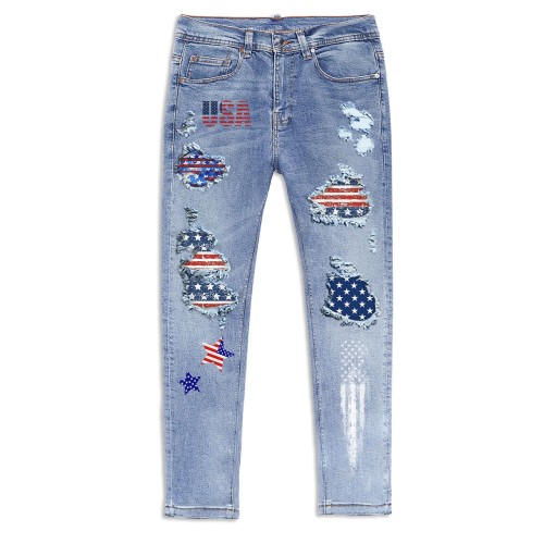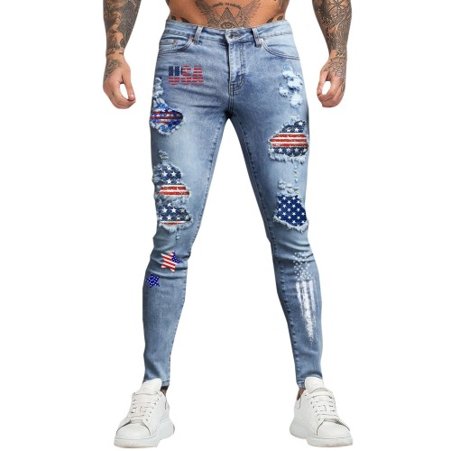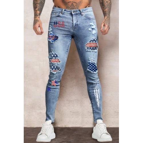 Sky Blue USA Flag Distressed Stretchy Ripped Hole Denim Pants