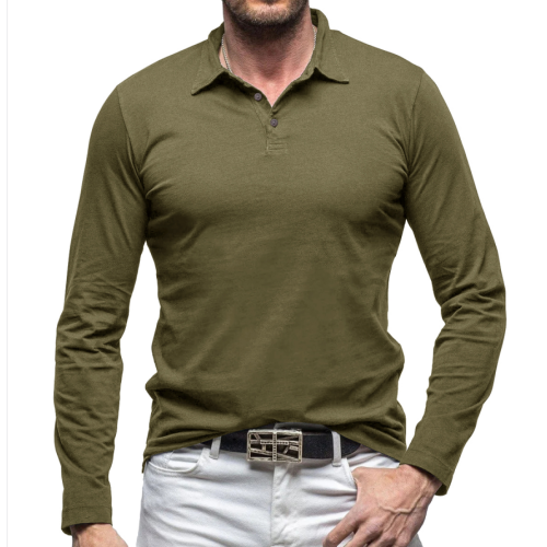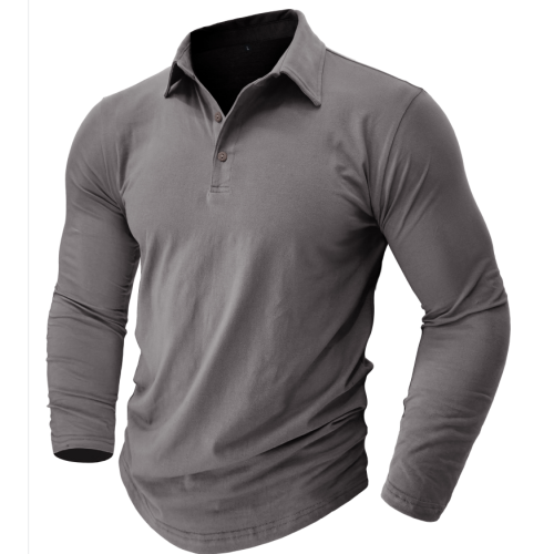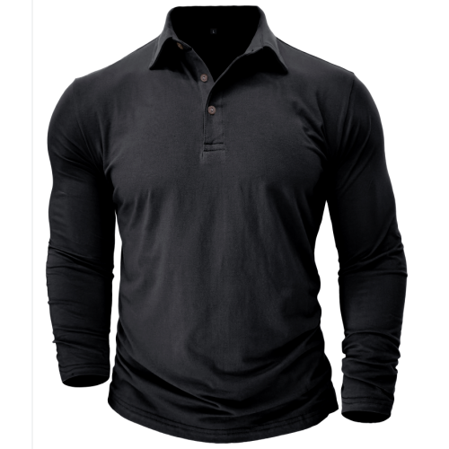 Autumn and winter outdoor new lapel European and n men's T-shirt solid color, cross-border foreign trade men's cotton long-sleeved polo shirt