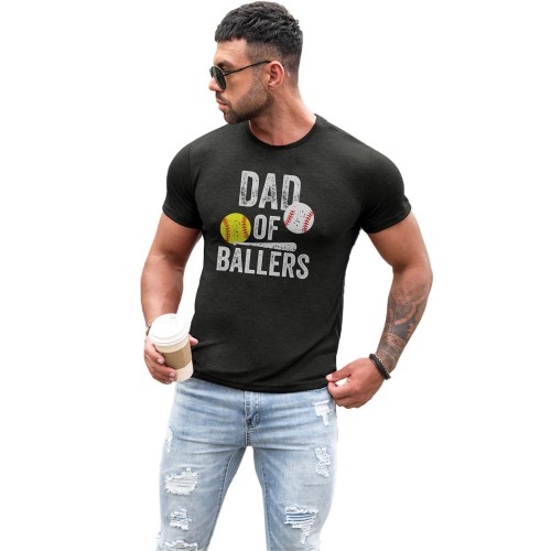 Black Dad Of Ballers Baseball Graphic Print Men's T Shirt