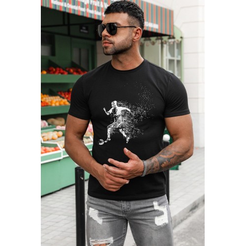Black Soccer Graphic Print Crew Neck Short Sleeve T Shirt