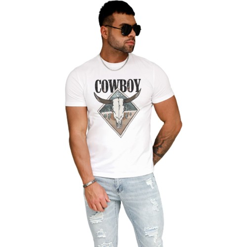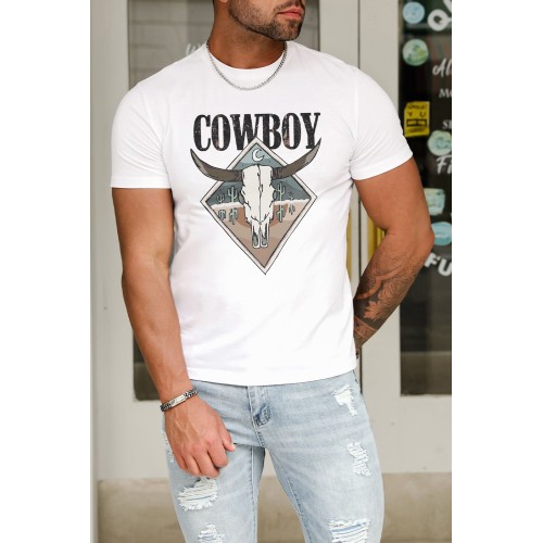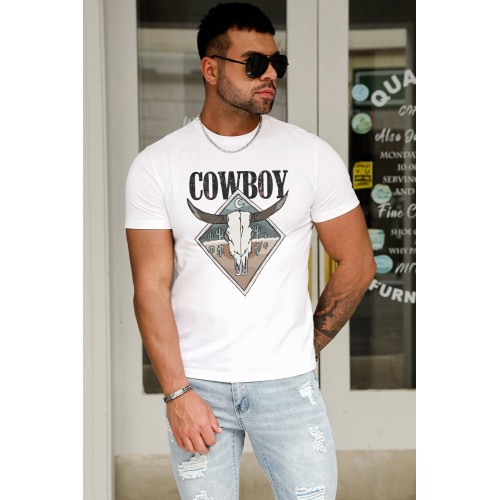 White Cowboy Western Cactus Graphic Mens T Shirt