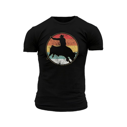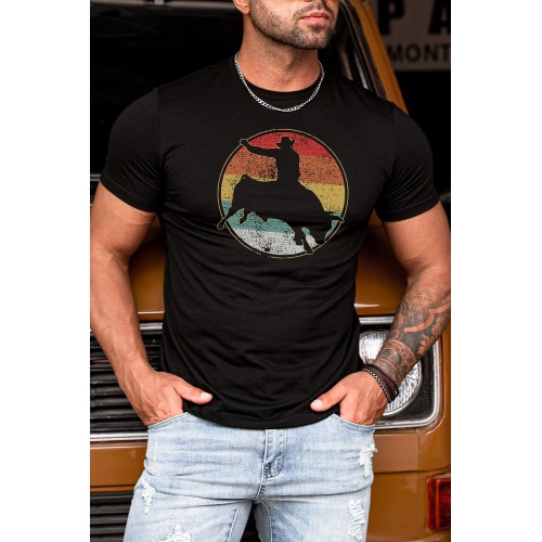 Black Men's Western Cowboy Graphic Print Short Sleeve T Shirt