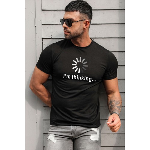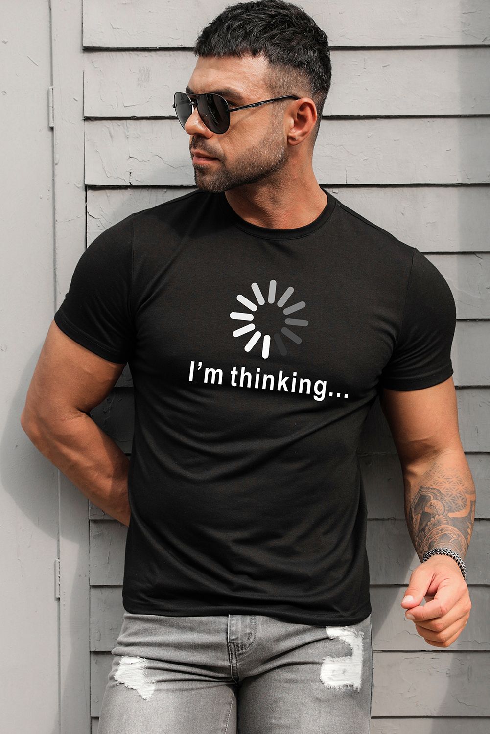 I'm Thinking Letter Graphic Print Slim Fit Men's T Shirt