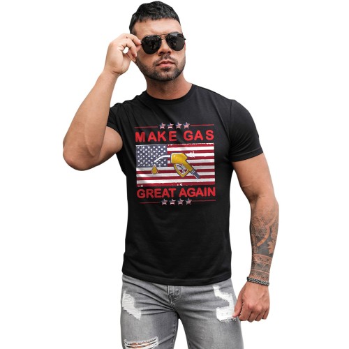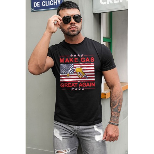 Black MAKE GAS GREAT AGAIN US Flag Graphic Print Men's T Shirt