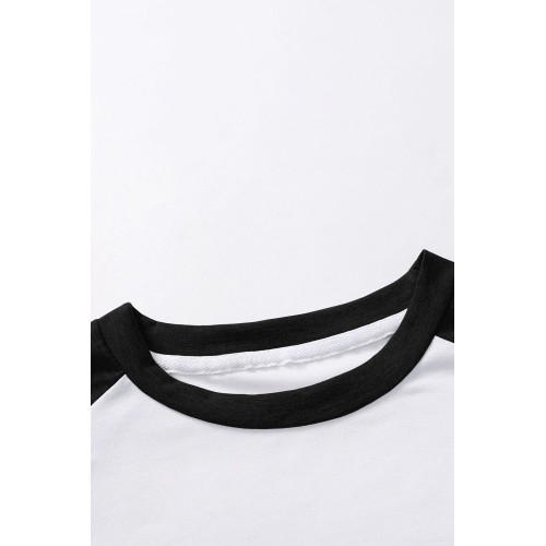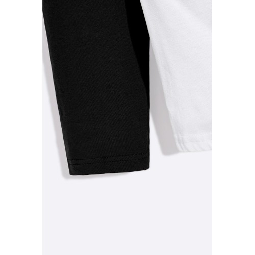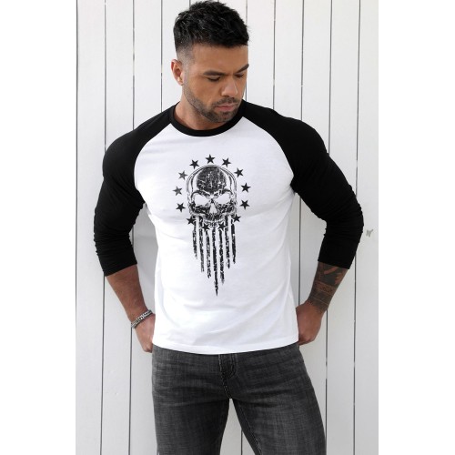 Black Skull Star Graphic Printed Color Block Long Sleeve Top