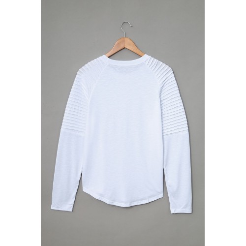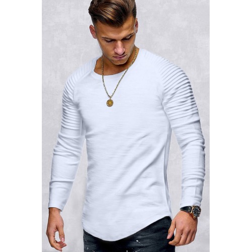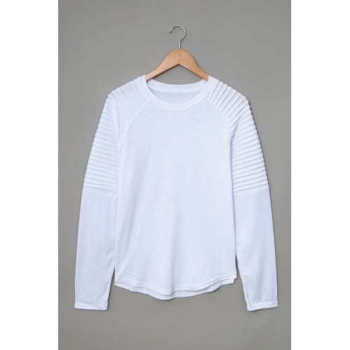 White Slim Fit Rib Raglan Sleeve Men's Top
