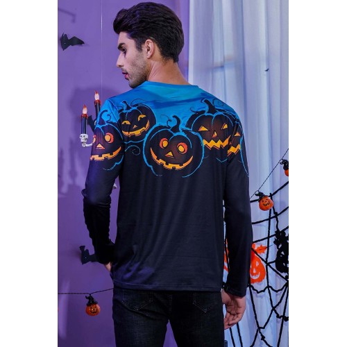 Men's 3D Halloween Pumpkin Print Knit Long Sleeve T-Shirt