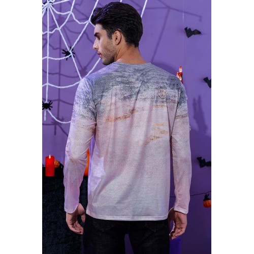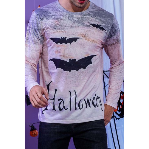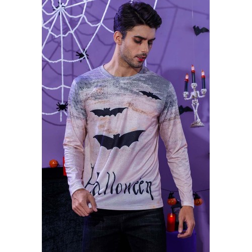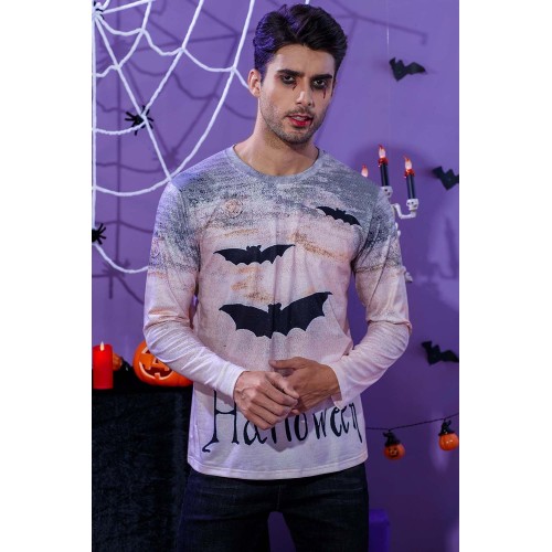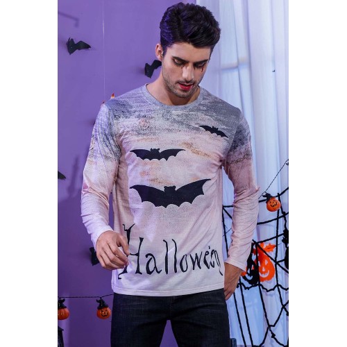 Men's Halloween Bat Print Long Sleeve Knit T-shirt