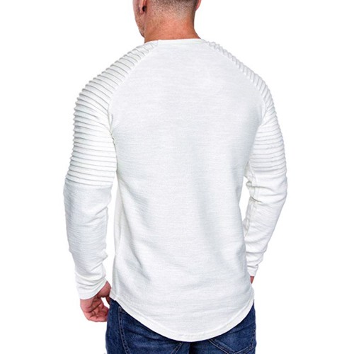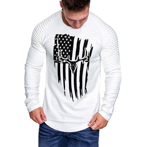White Men's Pleated Long Sleeve America Flag Graphic Print Top