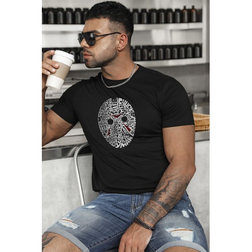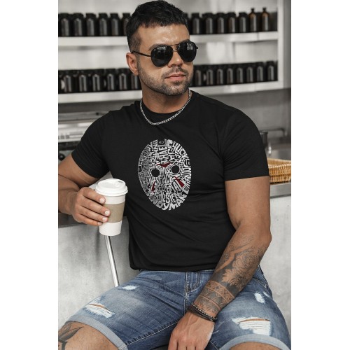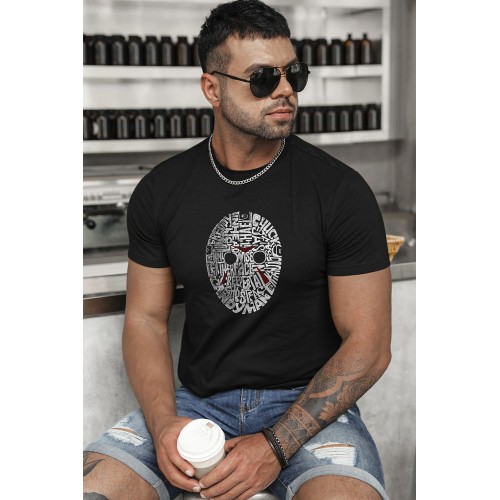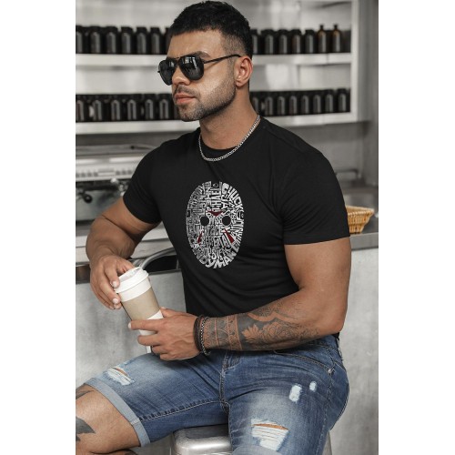 Black Letter Graphic Print Slim-fit Men's Short Sleeve Top