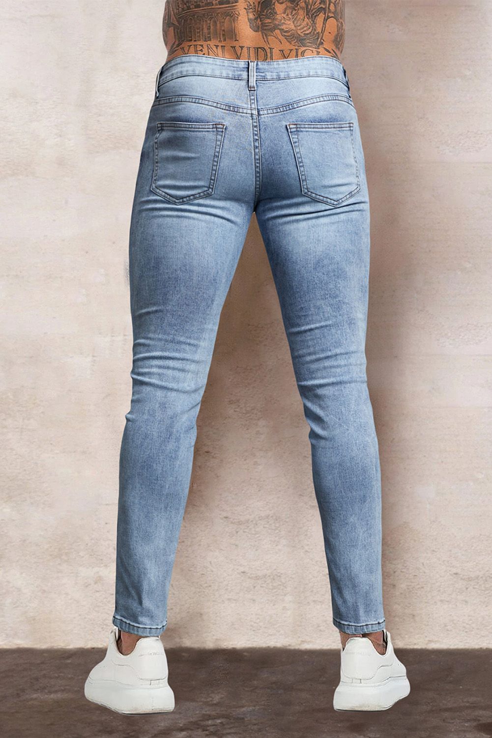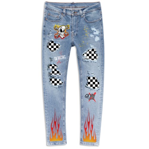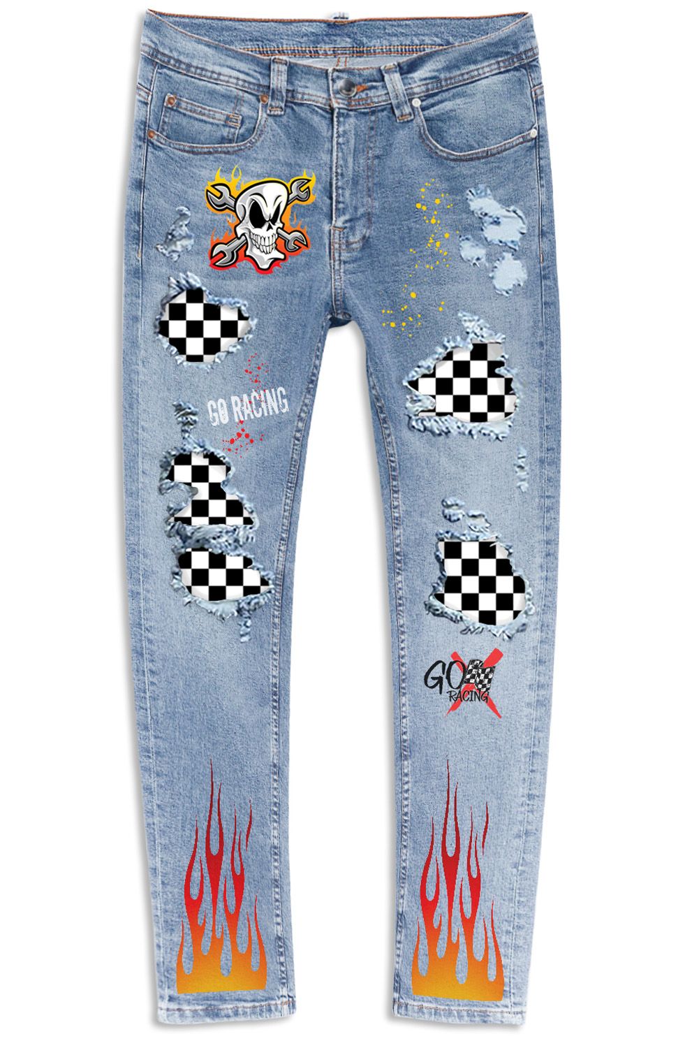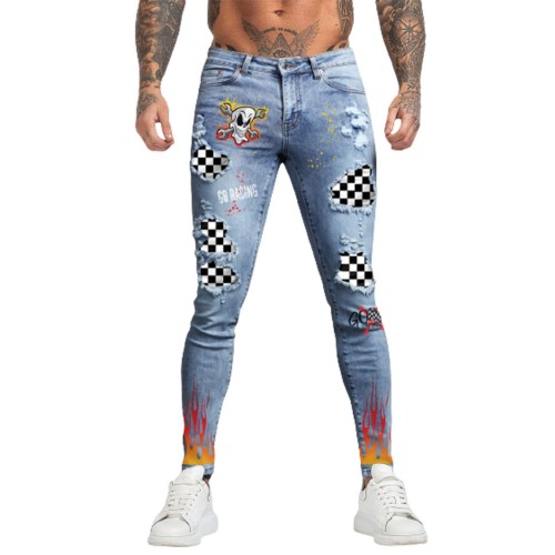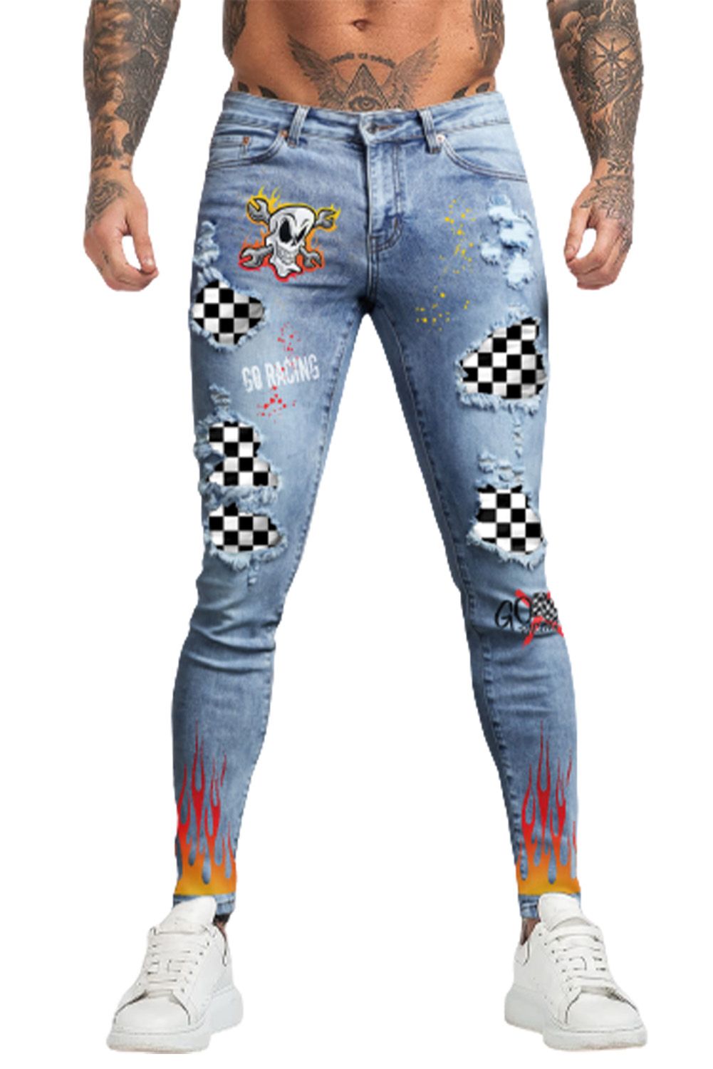 Plaid Ghost Print Patchwork Skinny Fit Men's Jeans