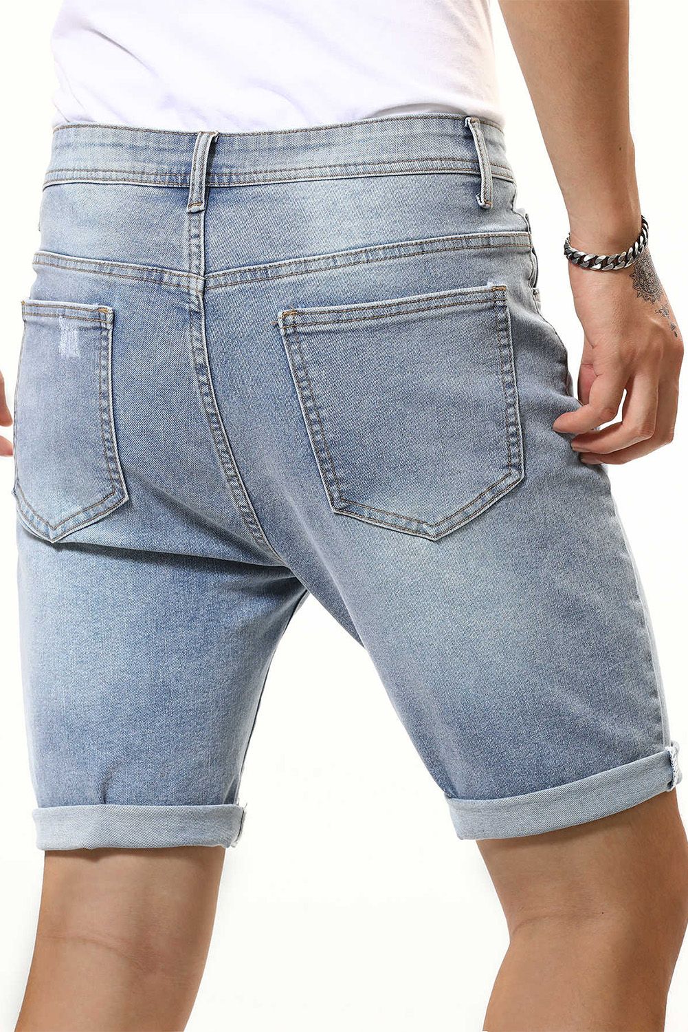 Skull Print Rolled Hem Ripped Men's Denim Shorts