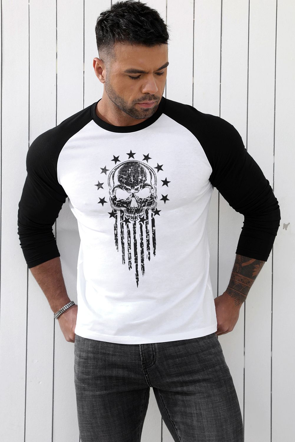 Skull Star Graphic Printed Color Block Long Sleeve Top