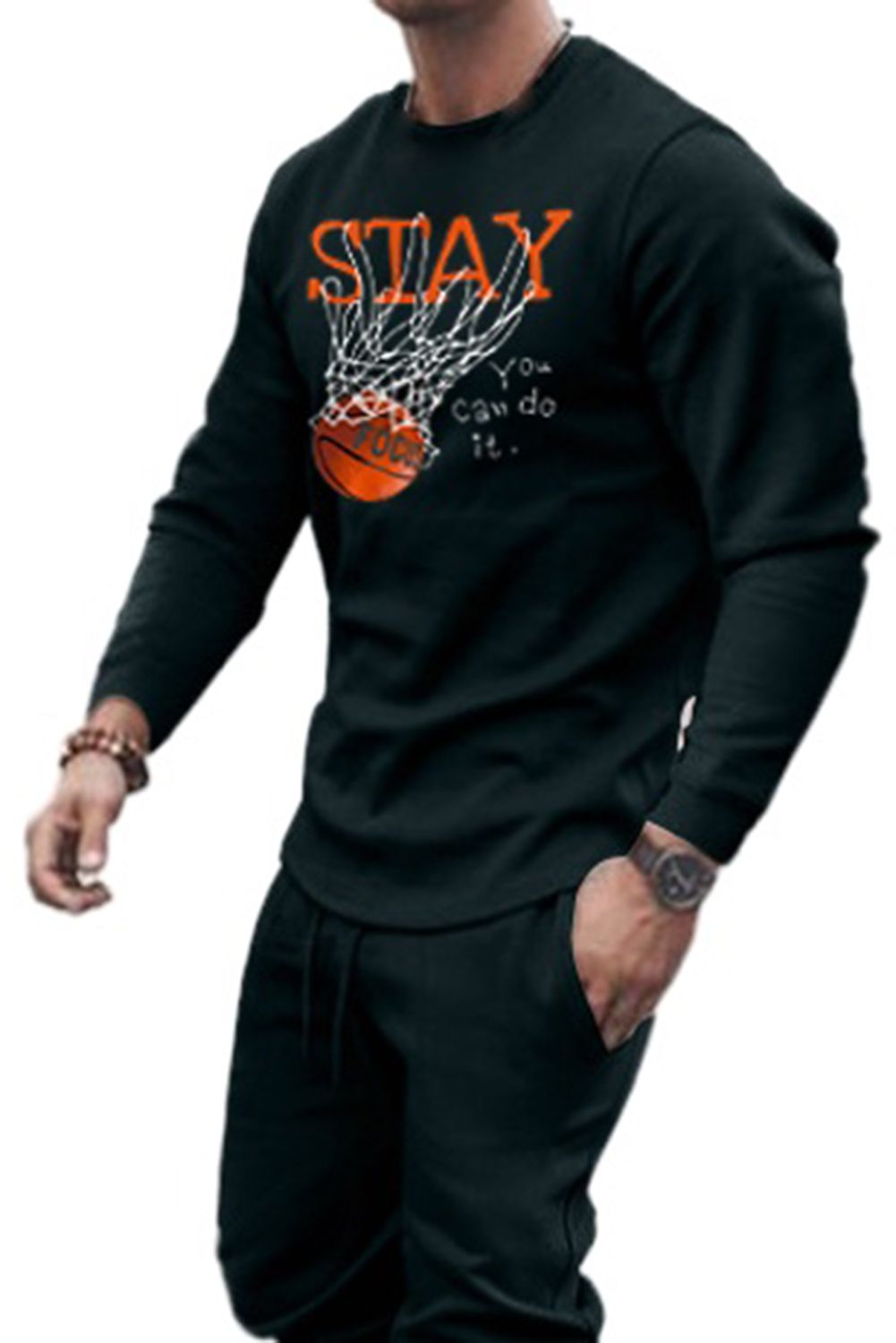 Men's Basketball Letter Print Long Sleeve Top and Pants Set