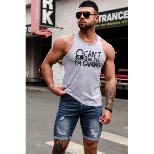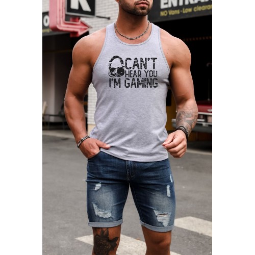 Headphone Letter Print O-neck Men's Graphic Tank Top
