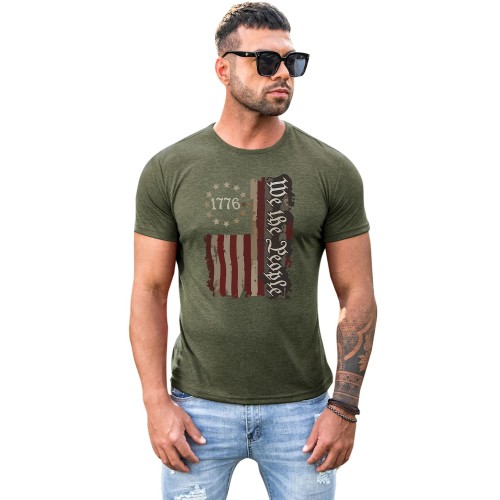 Green Vintage USA Flag 1776 Patriotic Mens T Shirt