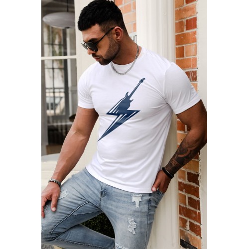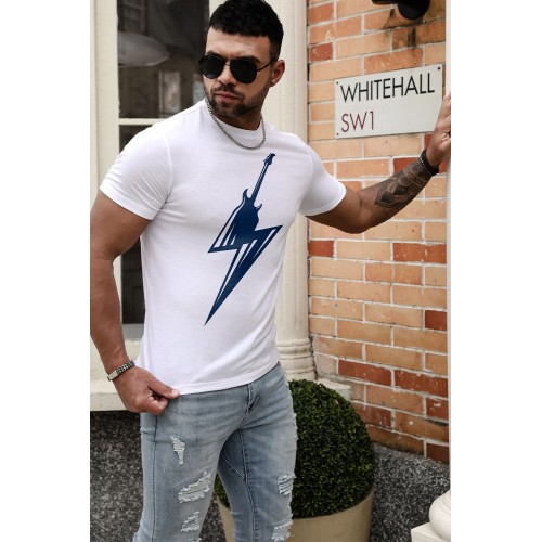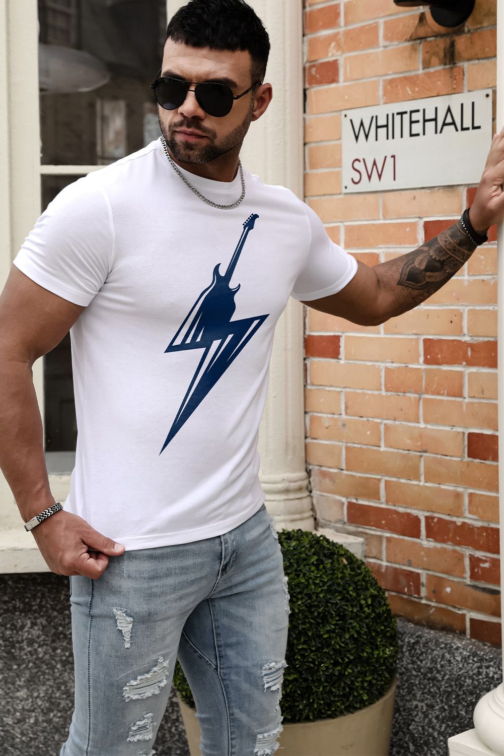 Guitar Lightning Bolt Print Men's Graphic T-shirt